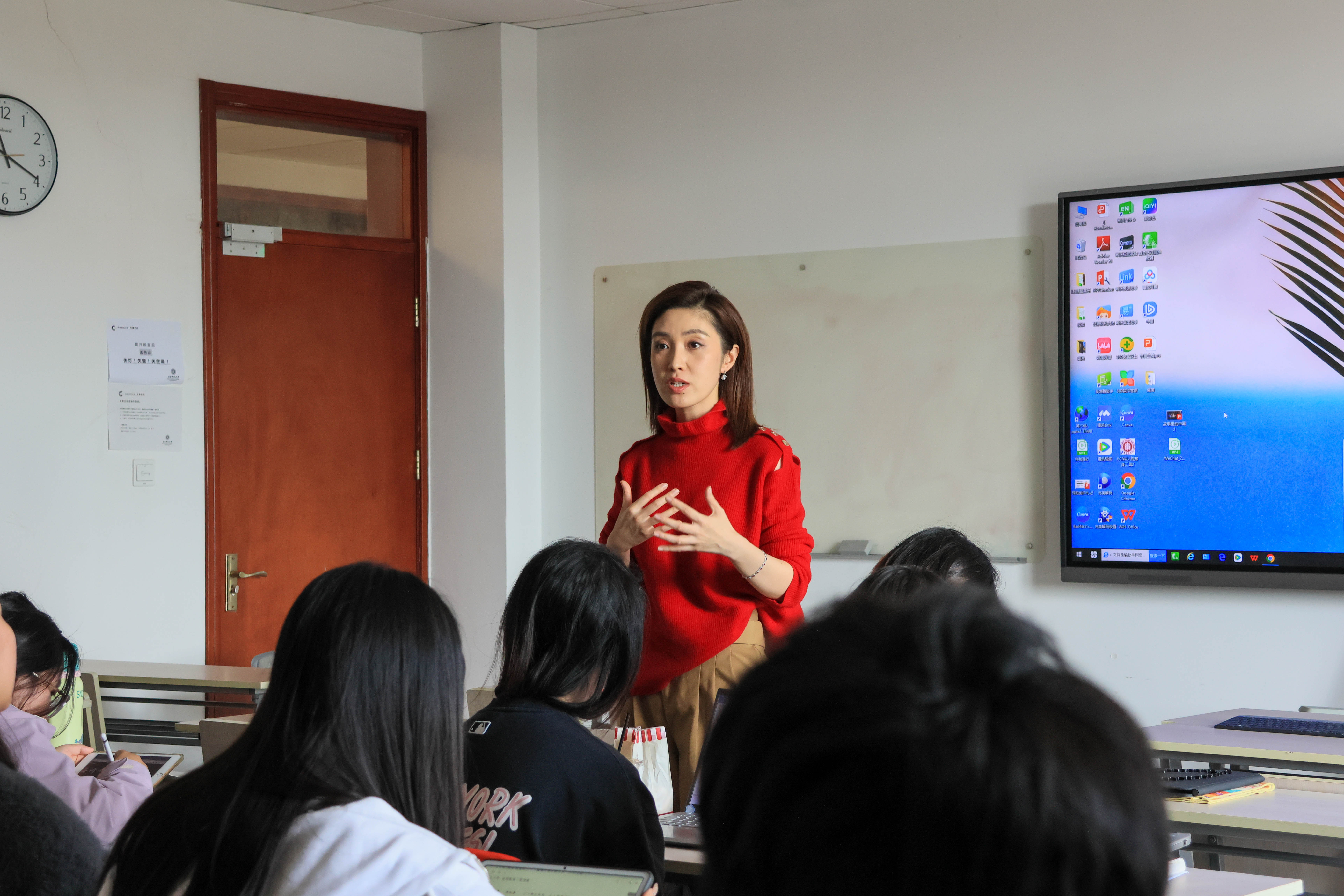 每年金秋时节,何卿老师都会来到《节目主持概论》的课堂上,对此她表示,每年的工作经历都会带来一些新感悟新经验,所以每次来和同学们分享的内容也会不同,对自己来说很像是对过去一年的梳理和总结。她首先提到了近期上海广播电视台面临的改革,并提醒大家主动地通过多种渠道关注行业动态,在公司磨练自身专业技能,提升文化知识水平的同时,也要和校外的世界保持紧密的联系,并不断地调整自身的步伐。