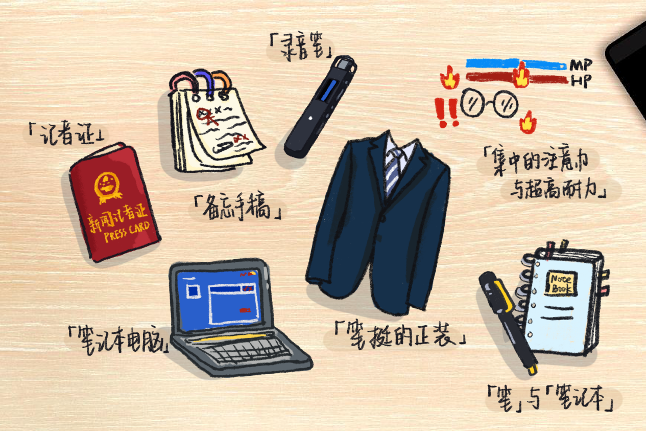 是他们专业形象的外化,手巾袋前别着的「记者证