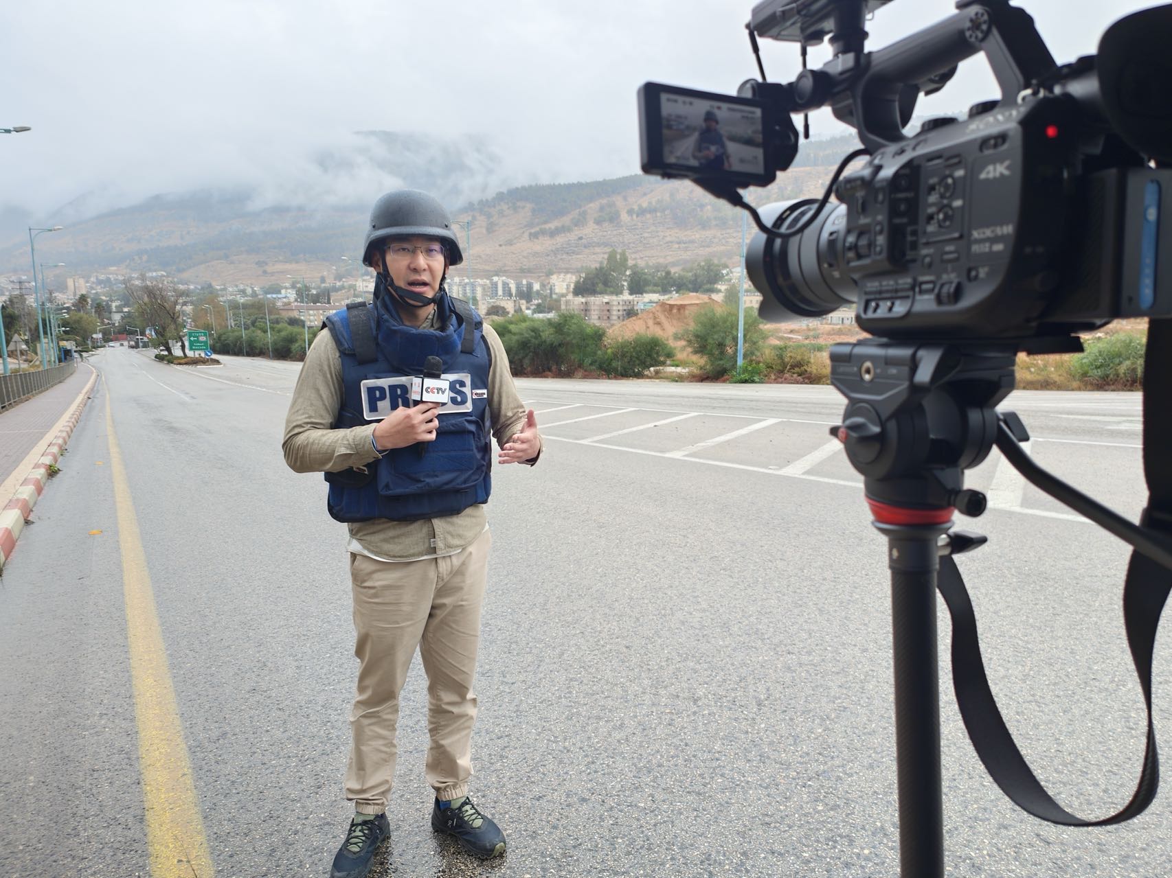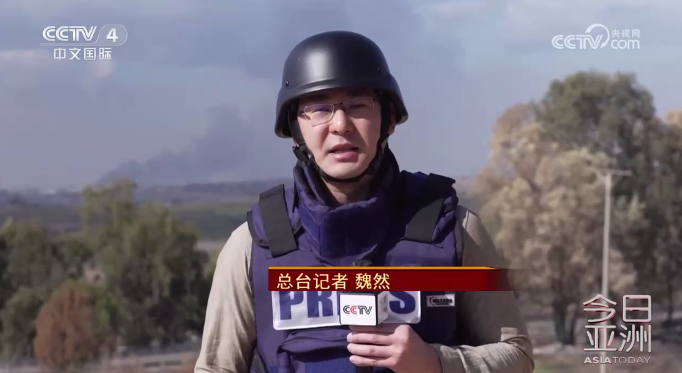 2023年11月,yl23411永利集团2005级员工、中央广播电视台总台记者魏然在加沙地带北部边界空袭现场附近直播报道