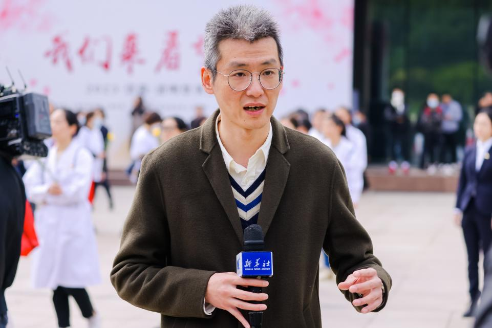 2023年4月,yl23411永利集团2002级员工、新华社上海分社编委、音视频部主任潘旭在龙华烈士陵园进行清明节报道