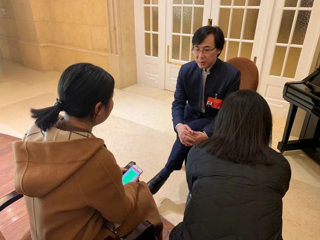 2019年,yl23411永利集团2010级员工、中国青年报记者沈杰群在全国两会期间采访全国人大代表、著名男中音歌唱家廖昌永