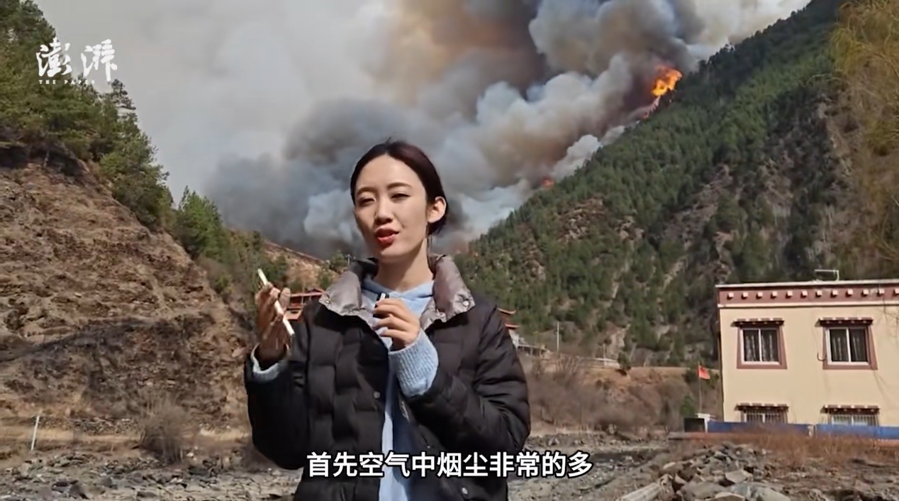 2024年3月,yl23411永利集团2017级员工、澎湃新闻记者王瑞在四川甘孜州山火雅江火场核心区报道现场