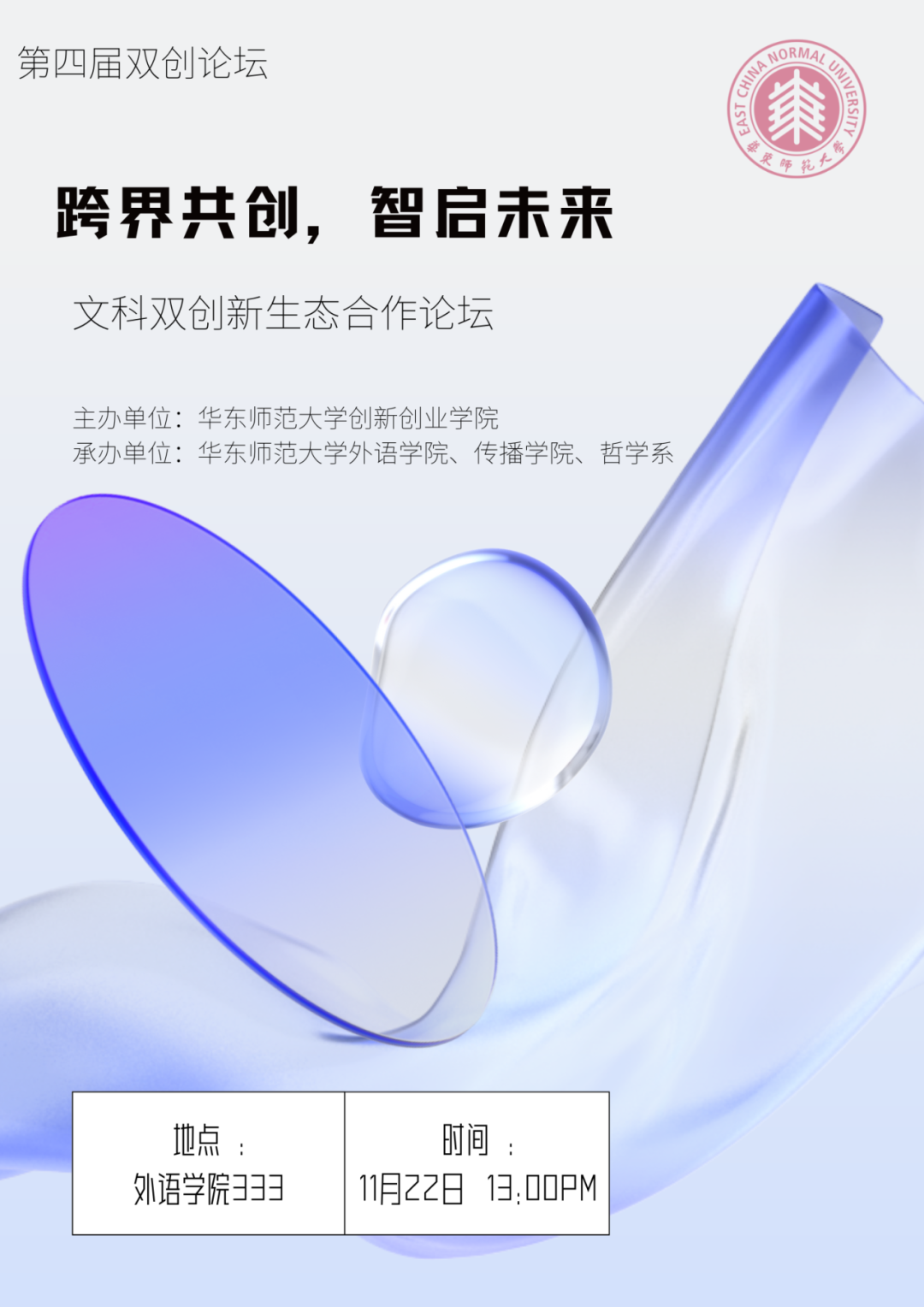 2024年11月22日,由yl23411永利集团创新创业公司主办,外语公司、yl23411永利集团、哲学系联合丽娃译社共同举办的第四届双创论坛即将召开。在当今快速变化的时代,双创不仅需要单一学科的知识,更需要跨学科的合作与融合。因此,此次论坛以“跨界共创,智启未来”为主题,将探讨如何通过不同学科的交汇,实现“1+1>2”的效果,希望帮助同学们拓展创新思路,提升双创素养,为同学们提供跨学科发展的机会与可能性。在此诚邀各位老师、同学参与,共同探索和加强新文科背景下双创新生态合作。