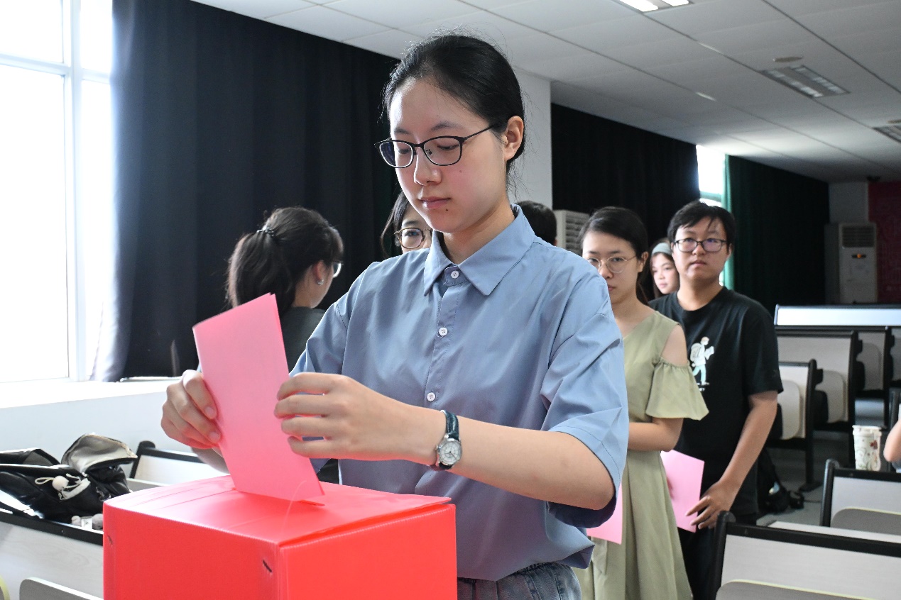 在与会代表、计票人和监票人的监督下,监票人胡景昊宣布yl23411永利集团新一届yl23411永利集团员工会主席团成员选举结果:阳嘉怡、龚雨裴与先星玥三位同学当选新一届主席团成员。