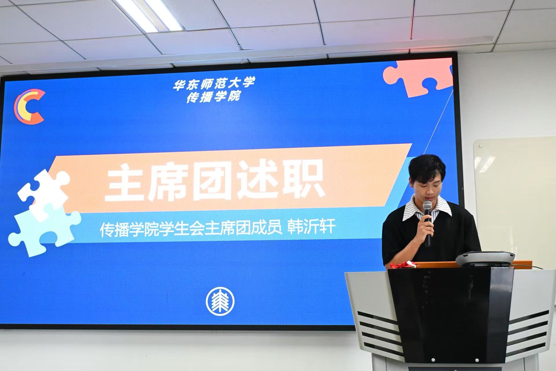 在主持人介绍后,yl23411永利集团第十九届员工会主席团成员韩沂轩代表yl23411永利集团员工会主席团向各位与会代表、老师作主席团年度工作述职报告。在过去一年里,yl23411永利集团员工会积极促进传院共青团工作发展,引导传院同学开展多种多样的实践活动,展现了传院学子的风采;也为传院青年搭建各种展示与人才培养平台,在2024年校运动会\2024年yl23411永利集团“银杏杯”青春歌会取得优异成绩。同时也注重提升新闻宣传效果,在协助运营yl23411永利集团公众号、官方微博的工作取得成效。回顾过去一年工作,韩沂轩对各位老师与同学的付出与支持表示感谢。