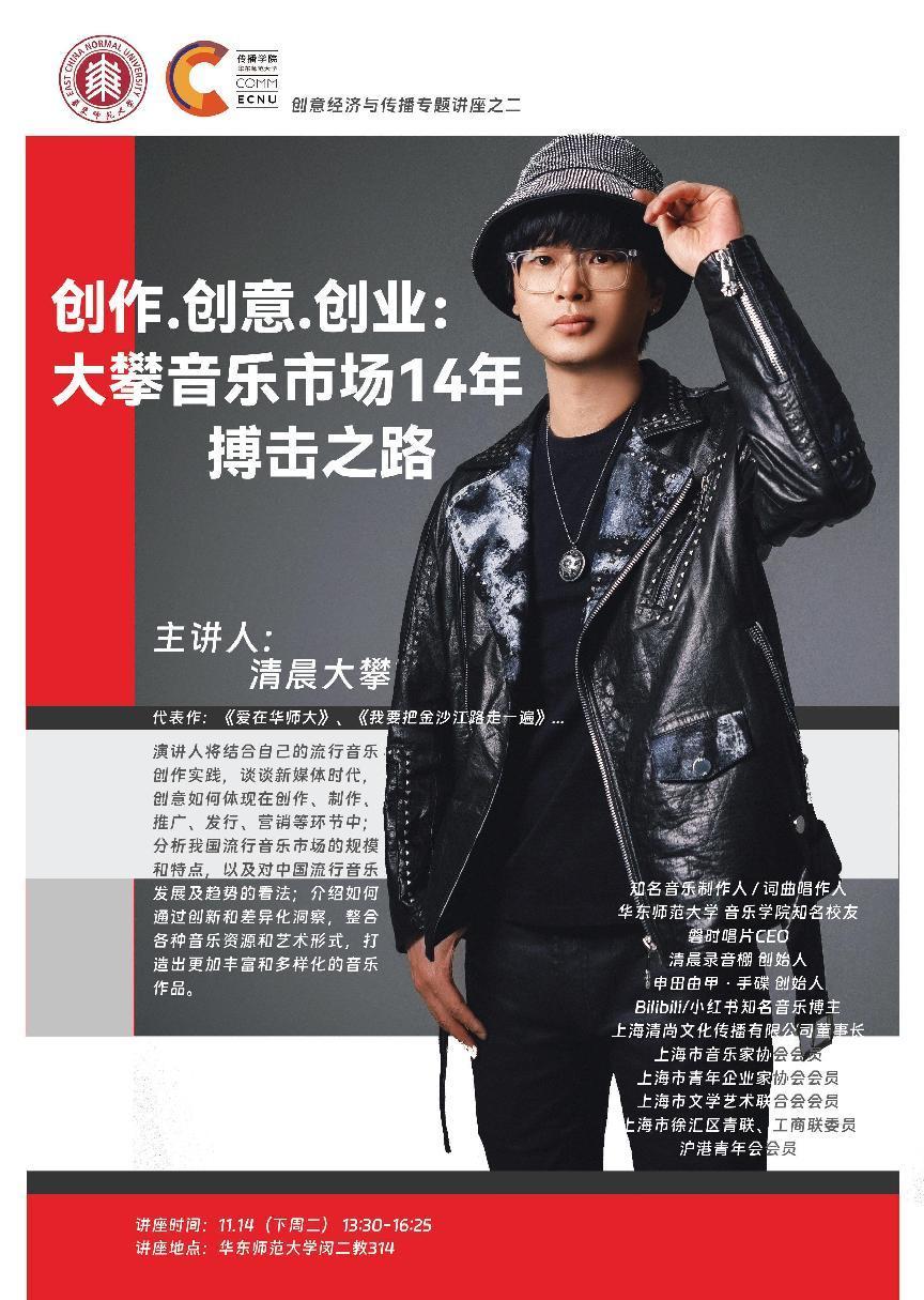 演讲人将结合自己的流行音乐创作实践,谈谈新媒体时代,创意如何体现在创作、制作、推广、发行、营销等环节中;分析我国流行音乐市场的规模和特点,以及对中国流行音乐发展及趋势的看法;介绍如何通过创新和差异化洞察,整合各种音乐资源和艺术形式,打造出更加丰富和多样化的音乐作品。